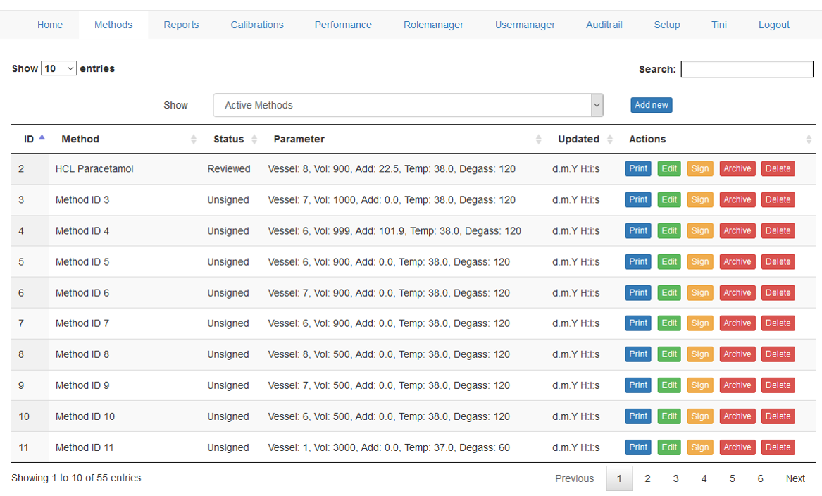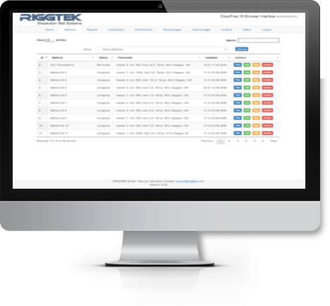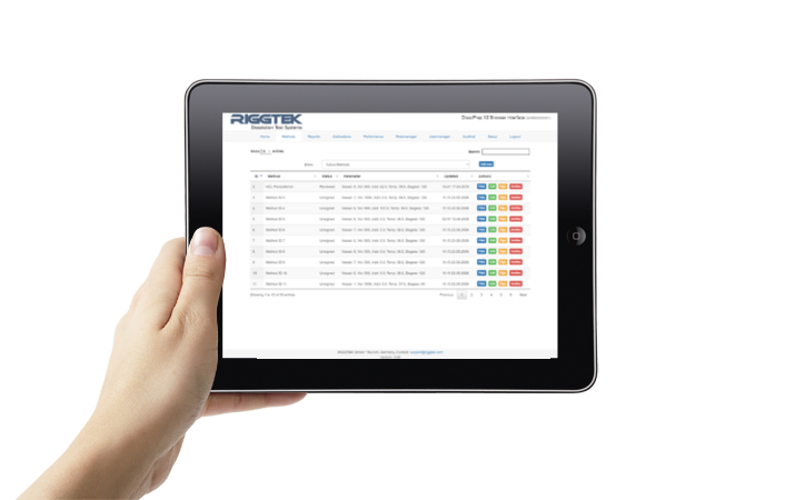Das serienmäßige Browser-Interface für den DissoPrep integriert ihn schnell und einfach in Ihre IT-Landschaft und ermöglicht Ihnen eine einfache Methoden-, Report- und Userverwaltung mittels Ihres (Internet-)Browsers. Mit dem optionalen "CFR Package" ist eine 21 CFR part 11 konforme Verwendung des DissoPrep möglich und das optional "Backup Package" sorgt für eine automatische Sicherung Ihrer Daten.