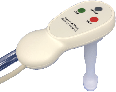 Der Remote Control Nozzle ist ein Dosierkopf mit Fernbedienung. Es können die Tasten ENTER, START und STOP am Dosierschlauchende fernbedient werden.